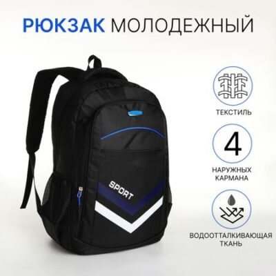 Главная » Товары для детей Рюкзак школьный на молнии, с карманами, черный/синий Просмотров 4 Рюкзак школьный на молнии, с карманами, черный/синий. No brand