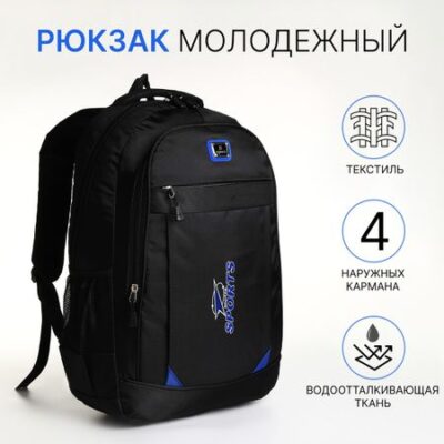 Главная » Товары для детей Рюкзак школьный на молнии, с карманами, черный/синий Просмотров 2 Рюкзак школьный на молнии, с карманами, черный/синий. No brand