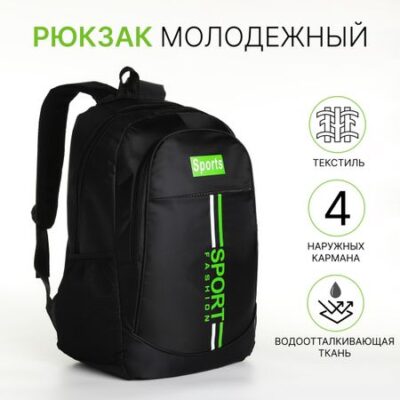 Главная » Товары для детей Рюкзак школьный на молнии, с карманами, черный/зеленый Просмотров 3 Рюкзак школьный на молнии, с карманами, черный/зеленый. No brand