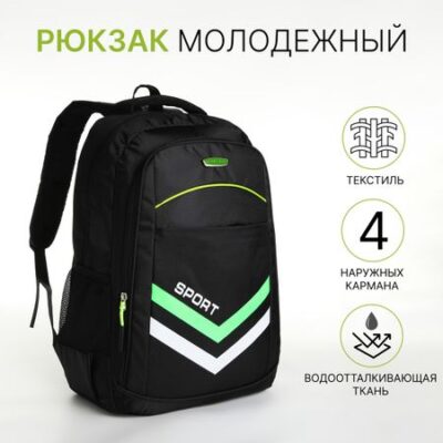 Главная » Товары для детей Рюкзак школьный на молнии, с карманами, черный/зеленый Просмотров 2 Рюкзак школьный на молнии, с карманами, черный/зеленый. No brand