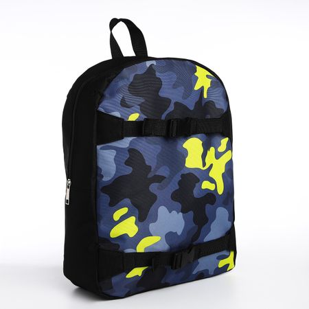 Главная » Товары для детей Рюкзак школьный текстильный с креплением для скейта Просмотров 4 Рюкзак школьный текстильный с креплением для скейта «Камуфляж», 38×29×11 см, черный, отдел на молнии. NAZAMOK