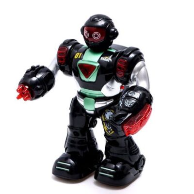 Робот «Супербот», световые и звуковые эффекты, работает от батареек, цвет зеленый. «Супербот» из межгалактического пространства уже спешит спасать игрушечный мир! Робот станет верным другом для юного защитника планеты Земля. Игрушка обладает множеством функций, которые не дадут заскучать маленькому непоседе. <b> Особенности</b> <ul> <li> Размер: 18 × 7 × 21 см.</li> <li> Робот движется только вперед.</li> <li> Световые эффекты: у робота светятся глаза и руки.</li> <li> Звуковые эффекты: робот воспроизводит звук стрельбы, а также некоторые фразы.</li> <li> В правую руку робота встроено игрушечное оружие.</li> <li> Стреляет снарядами с присосками (в комплекте 3 штуки).</li> <li> Игрушка работает от 3 батареек типа AA (не входят в комплект).</li> </ul> <b> Играем с пользой</b> Робот «Супербот» поможет малышу сделать первые шаги к изучению робототехники. Во время управления «Суперботом» ребенок также разовьет мелкую моторику рук и концентрацию внимания. Игрушка поспособствует развитию фантазии и воображения, так как в процессе игры ребенок сможет придумывать новые сюжеты.