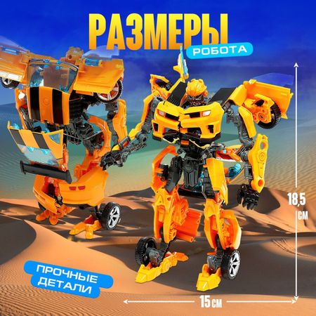 Робот «Автобот», трансформируется, с оружием, цвет оранжевый. Из глубин космоса по заоблачным маршрутам на нашу планету прибыл невероятный гость — «Автобот». Его главная особенность — умение трансформироваться из машинки в робота. <b> Особенности игрушки</b> <ul> <li> Размер в виде робота: 15 × 9,5 × 18,5 см.</li> <li> Размер в виде танка: 17,5 × 7,5 × 5,5 см.</li> <li> Размер оружия: 7,5 × 5 × 3,5 см.</li> <li> Изготовлен из качественного, безопасного для детей пластика.</li> <li> Предназначен для детей старше 3 лет.</li> </ul> <b> Увлекательно и полезно</b> Игра с роботом способствует развитию мелкой моторики рук, помогает улучшить координацию и точность движений. Кроме того, процесс трансформации робота стимулирует творческие способности ребенка и воображение, позволяет создавать новые уникальные сценарии и истории для игры.
