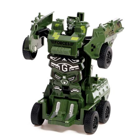 Робот «Бронетранспортер», инерционный, трансформируется при столкновении. Робот «Бронетранспортер» способен выполнить важную миссию и победить любого врага. Трансформер может за секунду превратиться в настоящего киборга из мощной бронемашины способен. <b> Особенности</b> <ul> <li> 2 в 1: два варианта трансформации в одной игрушке.</li> <li> Робот изготовлен из безопасного и высококачественного пластика, без добавления токсичных веществ.</li> <li> Робот имеет инерционный механизм движения. Чтобы привести машинку в движение, откатите ее назад и отпустите. Игрушка поедет под действием инерционного механизма, быстро разовьет скорость и достигнет намеченной цели.</li> <li> Яркий дизайн и проработанные элементы сделают игру реалистичной и интересной.</li> <li> Ребенок познакомится с функциями и строением нового вида настоящей военной техники.</li> <li> Игрушка предназначена для детей от 3 лет.</li> </ul> <b> Играем с пользой</b> Игра с роботом способствует развитию мелкой моторики рук, помогает улучшить координацию и точность движений. Трансформер стимулирует творческие способности ребенка и воображение, позволяет создавать новые сценарии и истории для игр.