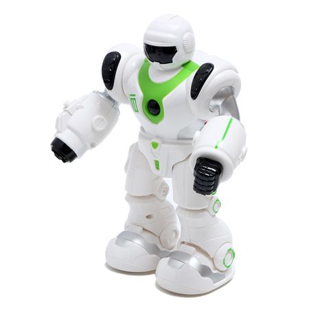 Робот GRAVITONE, свет, звук, стреляет, на батарейках, русская озвучка, зеленый. Робот GRAVITONE станет верным спутником ребенка. С ним малыш воплотит сюжеты, связанные с исследованием глубин космоса или спасением мира от инопланетных захватчиков! Игрушка умеет ходить, говорить на русском языке и стрелять мягкими патронами. <b> Особенности работа «Гравитон»</b> <ul> <li> Воспроизводит звуки стрельбы и трансформации.</li> <li> При включении робот начинает ходить, а его корпус светиться огоньками.</li> <li> Рука робота оснащена пушкой, которая стреляет патронами с присоской.</li> <li> Стрельба происходит в ручном режиме: чтобы выстрелить, вставьте патрон в руку и нажмите кнопку сверху.</li> <li> Для работы игрушки необходимо вставить 3 батарейки типоразмера АА (нет в комплекте).</li> </ul> <b> Робот говорит фразы:</b> <ul> <li> «Галактика в опасности!»</li> <li> «Начинаем трансформацию».</li> <li> «О-го-онь!».</li> <li> «Прикрой меня!».</li> <li> «Противник уничтожен!»</li> <li> «Победа за нами!»</li> </ul>