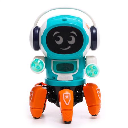 Робот музыкальный «Смарти», русское озвучивание, световые эффекты, цвет зеленый. Робот музыкальный «Смарти» — очаровательный подарок для детей. С веселым озорником никогда не соскучишься! Он заряжает друзей энергией и позитивом. Космический житель покорит обаянием и харизмой с перовых минут и подарит радостные эмоции. <b> Особенности</b> <ul> <li> Яркий дизайн, световые эффекты и веселые песни привлекут внимание непоседы.</li> <li> Робот танцует, машет руками и вращается.</li> <li> Ходит на 6 ногах вперед и назад.</li> <li> Товар сертифицирован и соответствует всем стандартам качества и безопасности.</li> <li> Для работы световых и звуковых эффектов игрушки требуется 3 батарейки типоразмера AA. В комплект не входят.</li> </ul> С увлекательной игрушкой малыш весело и с пользой проведет время, развивая воображение, фантазию и внимание.