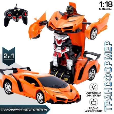 Робот радиоуправляемый «Ламбо», трансформируется с пульта, масштаб 1:18, цвет оранжевый. Готов к захватывающим приключениям будущего? Радиоуправляемый робот «Ламбо» – это стильный трансформер, который перенесет тебя в мир высоких технологий. Яркий оранжевый цвет, автоматическая трансформация и световые эффекты делают его идеальным выбором для мальчиков. Это не просто игрушка — это настоящий герой для игр! <ul> <li> Трансформация нажатием кнопки: робот легко превращается из машинки в робота прямо на глазах. Просто нажми кнопку на пульте, и трансформация начнется! Два режима добавляют игре разнообразия: гоняй как автомобиль или исследуй как робот.</li> <li> Управляй во все стороны: в режиме машинки робот передвигается плавно и точно: вперед, назад, влево и вправо. Управляй с пульта на расстоянии до 10 метров, создавая свои собственные маршруты и трюки.</li> <li> Световые эффекты: подсветка порогов добавляет игре атмосферы будущего. Каждое движение сопровождается яркими вспышками света, что делает игру еще более зрелищной и увлекательной.</li> <li> Простая активация: для работы робота нужны 5 батареек типа AA (приобретаются отдельно). Пульт управления также работает от батареек. Просто вставь их — и твой робот готов к приключениям!</li> <li> Качественные материалы: игрушка изготовлена из прочного пластика, который выдерживает активные игры. Легкий и удобный, этот робот легко взять с собой куда угодно. Его детализированный внешний вид делает его похожим на настоящий транспорт из фильмов о будущем.</li> </ul> Что развивает: этот робот помогает развивать воображение, координацию движений и навыки стратегического мышления. Ты можешь разыгрывать сценарии гонок, трансформаций или спасательных операций. Это не только весело, но и полезно для развития.