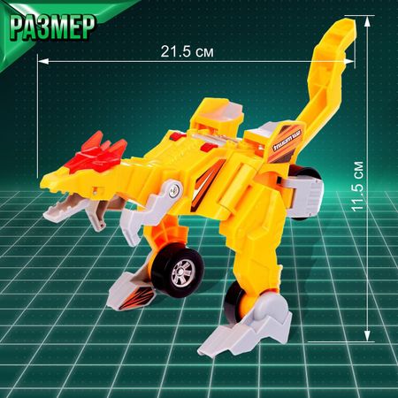 Робот с трансформацией «Динобот», световые и звуковые эффекты, цвета желтый. <b> Время действовать! </b> Маскируясь под автомобили, роботы живут среди нас. Когда темные силы атакуют планету, они трансформируются, чтобы дать отпор. «Динобот» — один из таких героев. Мальчишка с удовольствием вступит к нему в команду и вместе с киберзащитником сохранит Землю от уничтожения. <b> Невероятные особенности</b> Герой обладает сверхчеловеческой силой и мощью. Всего за несколько простых движений он из робота превращается в маневренный автомобиль. Яркий персонаж пробудит воображение мальчишки — с ним ребенок придумает множество захватывающих сюжетов и разыграет самые необычные ситуации. <b> Неоспоримая польза</b> В процессе игры мальчишка получит конструкторские навыки, разовьет воображение, образное и логическое мышление. «Динобот» изготовлен из высококачественного пластика, безопасного для детского здоровья.
