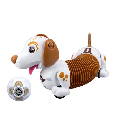Чудесная собачка ДЭШ коричневого цвета управляются с помощью пульта и реагирует на жесты. Если провести рукой, собачка начнёт бегать по кругу за своим хвостиком. Она обходит препятствия и может последовать за тобой. Мяч является пультом управления движением питомца. Нажми на кнопку, чтобы задать команду своей собачке. Верный друг и милый питомец, который подаёт голос, как настоящая собака.Состав набора: Робот-собака — 1 штПульт управления — 1 штИнструкция — 1 штБатарейки: AAA* 2(не входят в комплект) AA* 4(не входят в комплект)