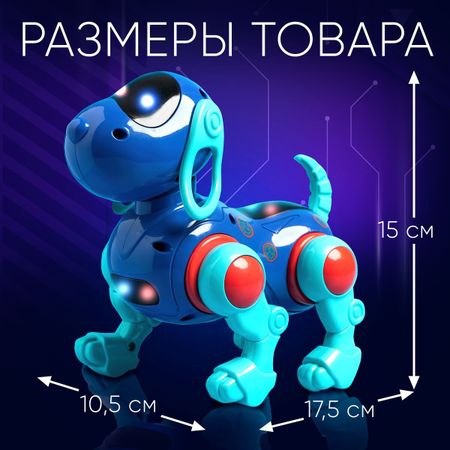 Робот-собака IQ DOG, световые и звуковые эффекты, русские песенки, работает от батареек, цвет синий. IQ DOG — чудо-робот, совсем как настоящая собачка! Берите ее с собой на прогулку, играйте дома или возьмите в поездку. Она будет лаять, говорить забавные фразы на русском языке и петь веселую песенку. С таким электронным питомцем малыш точно не заскучает. <b> Особенности</b> <ul> <li> Фразы на русском языке.</li> <li> Передвигается самостоятельно.</li> <li> Световые и звуковые эффекты.</li> <li> Робот работает от 3 батареек типа AAA, в комплект не входят.</li> </ul> Робот-собака IQ DOG отличный подарок для Вашего ребенка на любой праздник! Питомец станет для малыша настоящим другом!