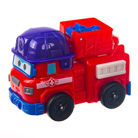 Машинки-помощники из мультфильма Супер Крылья. Эти герои всегда готовы прийти на помощь Джетту и его друзьям, чтобы справиться с любыми трудностями. Каждая машинка обладает своей функцией. Простым нажатием на кнопку у пожарной машинки выдвигается спасательная лестница. Длина машинки 6,5 см.