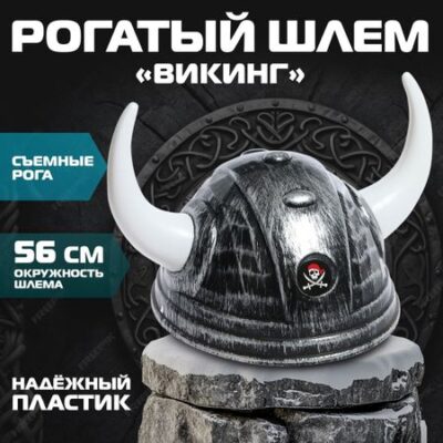 Рогатый шлем «Викинг», съемные рога. Стань легендарным викингом! Шлем «Викинг» – это стильный аксессуар с рогами, который перенесет вашего ребенка в эпоху средневековых героев. Прочный пластик и удобная посадка делают его идеальным выбором для игр и костюмированных мероприятий. <ul> <li> Рога можно снять: шлем оснащен съемными рогами, что позволяет легко менять образ или использовать его как простой шлем. Это добавляет универсальности и практичности в игру.</li> <li> Универсальный размер: окружность шлема составляет 56 см, что делает его подходящим не только для детей, но и для взрослых. Теперь вся семья может присоединиться к приключениям!</li> <li> Идеально для ролевых игр: этот шлем подойдет для мальчиков, которые любят фантазировать и разыгрывать сценки из жизни викингов или других героических персонажей. Он помогает развивать воображение, уверенность и творческое мышление. Играйте дома или на улице – шлем готов к любым испытаниям.</li> </ul>