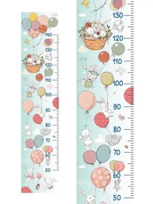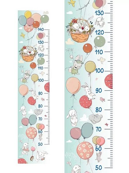Ростомер наклейка VEROL зайцы на шариках на стену акварельный д/измер роста голубой, 120 см