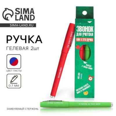 Ручка гелевая «Учителю: Звонок для учителя», 2 штуки, синяя и красная паста,пишущий узел 0.7. Ручка отлично подойдет в качестве подарка. Яркий дизайн несомненно привлечет внимание и будет выделяться среди других предметов, а удобная форма корпуса позволит использовать ее с комфортом. <ul> <li> Вид ручки: гелевая;</li> <li> Цвет стержня: синий, красный;</li> <li> Стержень заменяемый: да;</li> <li> Материал: пластик;</li> <li> Форма корпуса: круглая.</li> </ul> Упаковка: пакет.