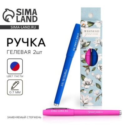Ручка гелевая «Любимому учителю», 2 штуки, синяя и красная паста,пишущий узел 0.7. Ручка отлично подойдет в качестве подарка. Яркий дизайн несомненно привлечет внимание и будет выделяться среди других предметов, а удобная форма корпуса позволит использовать ее с комфортом. <ul> <li> Вид ручки: гелевая;</li> <li> Цвет стержня: синий, красный;</li> <li> Стержень заменяемый: да;</li> <li> Материал: пластик;</li> <li> Форма корпуса: круглая.</li> </ul> Упаковка: пакет.