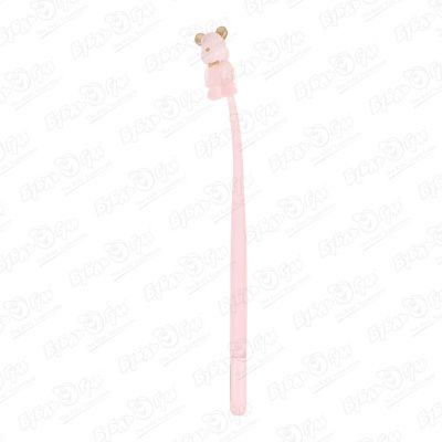 Ручка гелевая с фигуркой медведя в тонком и легком корпусе розовая в ассортименте