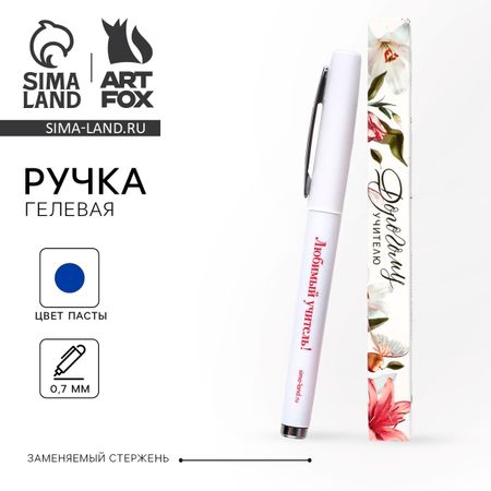 Ручка гелевая с колпачком, пластик, синяя паста 0.7 мм «Дорогому учителю». Ручка отлично подойдет в качестве подарка. Яркий дизайн несомненно привлечет внимание и будет выделяться среди других предметов, а удобная форма корпуса позволит использовать ее с комфортом. <ul> <li> Вид ручки: гелевая;</li> <li> Цвет стержня: синий;</li> <li> Стержень заменяемый: да;</li> <li> Материал: пластик;</li> <li> Форма корпуса: круглая.</li> </ul> Упаковка: пакет.