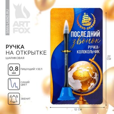 Ручка-колокольчик, шариковая, синяя паста, 0.8 мм «Выпускной: Последний звонок». Ручка-колокольчик на открытке станет отличным помощником в рабочих и учебных делах. Преимущества <ul> <li> Интересный дизайн в форме колокольчика</li> <li> Подложка с красивыми пожеланиями</li> </ul> Толщина линии письма: 0.8 мм; Цвет чернил: синий; Форма корпуса: круглая;