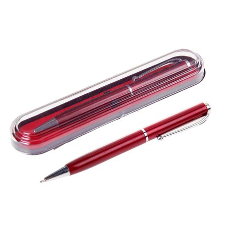 Ручка подарочная, шариковая «Классика» в пластиковом футляре, поворотная, бордовая с серебристыми вставками. <b> Стильная шариковая ручка Calligrata станет отличным подарком к любому празднику или событию, подчеркнет статус и изысканность вкуса владельца.</b> Роскошная модель шариковой ручки. Стиль и изысканность, роскошь и практичность, совершенство снаружи и внутри — всем этим требованиям достойно отвечает продукция. <b> Приобретайте ручку Calligrata в нашем интернет-магазине.</b>