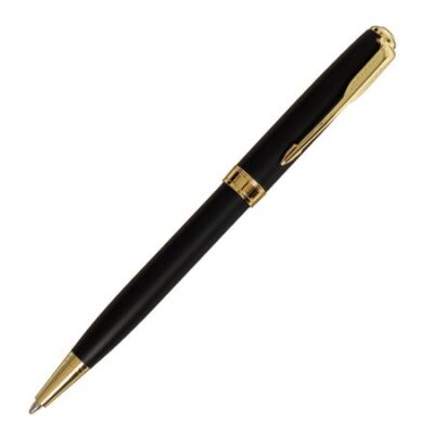 Ручка подарочная шариковая Calligrata, в кожзам футляре, ПБ S, поворотная, корпус черный/золото. Шариковая поворотная ручка — отличный инструмент для ежедневного использования. <ul> <li> Внутри корпуса — синие чернила.</li> <li> На ручке есть клип — можно закрепить ее на одежде или тетради.</li> <li> Благодаря диаметру пишущего узла 0,5 мм подходит для любого стиля письма.</li> <li> Гладкое скольжение пишущего узла, удобный корпус и доказанная надежность делает такие ручки одними из самых популярных письменных принадлежностей среди детей и взрослых.</li> </ul> Приобретайте шариковые ручки оптом в нашем магазине по выгодным условиям.