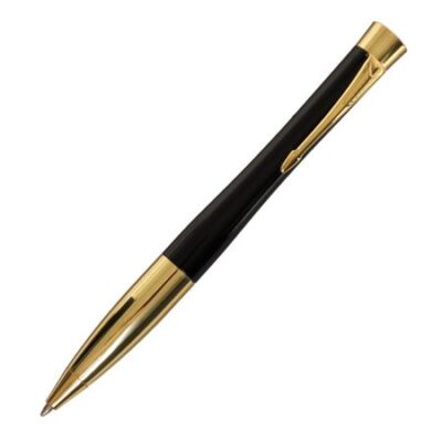 Ручка подарочная шариковая, в кожзам футляре, поворотная, ПБ U, корпус черный/золото. Шариковая поворотная ручка — отличный инструмент для ежедневного использования. <ul> <li> Внутри корпуса — синие чернила.</li> <li> На ручке есть клип — можно закрепить ее на одежде или тетради.</li> <li> Благодаря диаметру пишущего узла 0,5 мм подходит для любого стиля письма.</li> <li> Гладкое скольжение пишущего узла, удобный корпус и доказанная надежность делает такие ручки одними из самых популярных письменных принадлежностей среди детей и взрослых.</li> </ul> Приобретайте шариковые ручки оптом в нашем магазине по выгодным условиям.