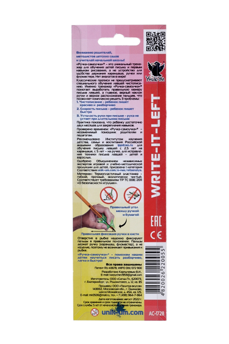 Главная » Товары для детей Ручка-самоучка-тренажер Уник-Ум д/обучения левшей и исправления техники письма левшей Просмотров 5 Карпычев В И ФЛП/Сигна-П ООО
