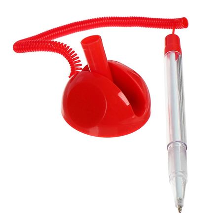 Ручка шариковая 0.5 мм на подставке «Стоп» с липучкой и шнуром, стержень синий, корпус красный (штрихкод на штуке). <b> Шариковая ручка с колпачком и пластиковым клипом представлена в стильном и лаконичном дизайне.</b> <li> Цвет чернил — синий.</li> <li> Диаметр пишущего узла составляет 0,5 мм, благодаря чему ручка идеально подходит для быстрого стиля письма.</li> <li> Длина линии письма — 900 м.</li> <li> Уникальная технология обеспечивает легкое и приятное письмо за счет использования чернил пониженной вязкости, специальной конструкции пишущего узла и инновационных материалов шарика и пишущего узла.</li> <li> Инновационные компоненты, используемые для изготовления шарика пишущего узла, обеспечивают долговечность и стабильность качества письма.</li> <b> Приобретайте шариковые ручки оптом в нашем магазине по выгодным условиям.</b>