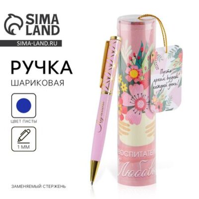 Ручка шариковая металлическая в тубусе синяя паста, 1.0 мм «Лучший воспитатель». Ручка отлично подойдет в качестве подарка. Яркий дизайн несомненно привлечет внимание и будет выделяться среди других предметов, а удобная форма корпуса позволит использовать ее с комфортом. <ul> <li> Вид ручки: шариковая;</li> <li> Цвет стержня: синий;</li> <li> Стержень заменяемый: да;</li> <li> Материал: металл;</li> <li> Форма корпуса: круглая.</li> </ul> Упаковка: пакет.