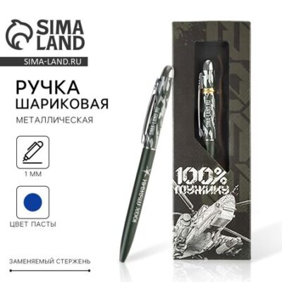Ручка шариковая, подарочная «100% мужик», матовая, металл. Ручка отличное дополнение к подарку. Яркий дизайн несомненно привлечет внимание и будет выделяться среди других предметов, а удобная форма корпуса позволит использовать ее с комфортом. <ul> <li> Цвет стержня: синий;</li> <li> Стержень заменяемый: да;</li> <li> Материал: металл;</li> <li> Форма корпуса: круглая.</li> </ul>