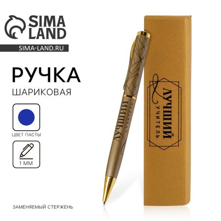 Ручка шариковая подарочная, металл, синяя паста, 1.0 мм «Лучший учитель». Ручка отлично подойдет в качестве подарка. Яркий дизайн несомненно привлечет внимание и будет выделяться среди других предметов, а удобная форма корпуса позволит использовать ее с комфортом. <ul> <li> Вид ручки: шариковая;</li> <li> Цвет стержня: синий;</li> <li> Стержень заменяемый: да;</li> <li> Материал: металл;</li> <li> Форма корпуса: круглая.</li> </ul> Упаковка: пакет.