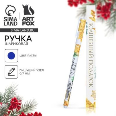 Ручка шариковая, синяя паста, 0.7 мм, с колпачком, пластик, софт-тач «Новый год: Чудеса случаются!». Ручка торговой марки ArtFox отлично подойдет в качестве подарка. Яркий дизайн несомненно привлечет внимание и будет выделяться среди других предметов, а удобная форма корпуса позволит использовать ее с комфортом. <ul> <li> Цвет стержня: синий;</li> <li> Стержень заменяемый: да;</li> <li> Материал: пластик;</li> <li> Форма корпуса: круглая.</li> </ul>