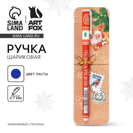 Ручка шариковая, синяя паста, 0.7 мм, с колпачком, пластик « Новогодняя почта». Ручка отлично подойдет в качестве подарка. Яркий дизайн несомненно привлечет внимание и будет выделяться среди других предметов, а удобная форма корпуса позволит использовать ее с комфортом. <ul> <li> Цвет стержня: синий;</li> <li> Стержень заменяемый: да;</li> <li> Материал: пластик;</li> <li> Форма корпуса: круглая.</li> </ul>