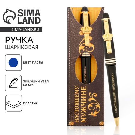 Ручка шариковая, синяя паста 1.0 мм пластик, подарочная «Настоящий мужчина». Ручка отличное дополнение к подарку. Яркий дизайн несомненно привлечет внимание и будет выделяться среди других предметов, а удобная форма корпуса позволит использовать ее с комфортом. <ul> <li> Стержень заменяемый: да;</li> <li> Материал: пластик.</li> </ul>