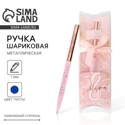 Ручка шариковая, синяя паста, металл, 1.0 мм «С 8 марта!». Ручка отличное дополнение к подарку. Яркий дизайн несомненно привлечет внимание и будет выделяться среди других предметов, а удобная форма корпуса позволит использовать ее с комфортом. <ul> <li> Цвет стержня: синий;</li> <li> Стержень заменяемый: да;</li> <li> Материал: металл;</li> <li> Форма корпуса: круглая.</li> </ul>