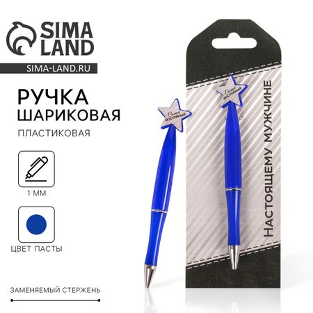 Ручка шариковая, синяя паста, пластик, со звездой, на подложке- погон «Настоящему мужчине». Ручка отличное дополнение к подарку. Яркий дизайн несомненно привлечет внимание и будет выделяться среди других предметов, а удобная форма корпуса позволит использовать ее с комфортом. <ul> <li> Стержень заменяемый: да;</li> <li> Материал: пластик.</li> </ul>