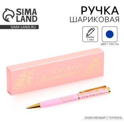 Ручка шариковая в подарочном футляре металл, синяя паста, пишущий узел 1.0 мм «Воспитателю: Дорогой Воспитатель». Ручка отлично подойдет в качестве подарка. Яркий дизайн несомненно привлечет внимание и будет выделяться среди других предметов, а удобная форма корпуса позволит использовать ее с комфортом. <ul> <li> Вид ручки: шариковая;</li> <li> Цвет стержня: синий;</li> <li> Стержень заменяемый: да;</li> <li> Материал: металл;</li> <li> Форма корпуса: круглая.</li> </ul> Упаковка: пакет.