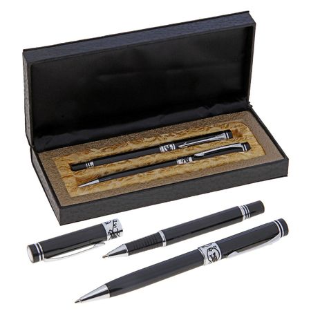 Ручки подарочные, 2 шт.: капиллярная, шариковая поворотная, в кожзам футляре, vip, черные