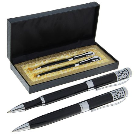Ручки шариковые подарочные «Гравюра» 2 шт., в кожзам футляре. Стильная шариковая ручка станет отличным подарком к любому празднику или событию, подчеркнет статус и изысканность вкуса владельца. Роскошная модель шариковой ручки.Поставляется в индивидуальном подарочном футляре. Стиль и изысканность, роскошь и практичность, совершенство снаружи и внутри — всем этим требованиям достойно отвечает продукция. Приобретайте ручку в нашем интернет-магазине.