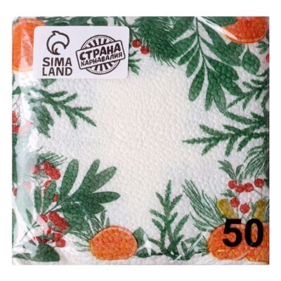 Салфетки бумажные «Новогодний аромат», однослойные, 24 х 24 см, 50 шт. Салфетки станут функциональным украшением праздничного стола! Изделия из однослойнные бумаги с ярким принтом добавят сервировке красочных ноток и дополнят антураж. Эта деталь придется по душе всем гостям, которые непременно почувствуют сказочный эффект правильно организованного торжества!