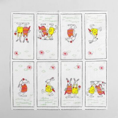 Салфетки бумажные на пасху «Пасхальные кролики», 33×33 см, набор 20 шт.. Бумажные салфетки «Пасхальные кролики» — это отличный выбор для украшения стола на светлый праздник. В наборе 20 салфеток размером 33 × 33 см, которые оформлены в праздничной тематике. Эти салфетки добавят утонченности и завершенности сервировке стола на Пасху, подчеркнув атмосферу праздника. <b> Особенности товара</b> <ul> <li> Праздничный дизайн с тематическим рисунком делает салфетки отличным выбором для сервировки стола на Пасху.</li> <li> Размер 33 × 33 см удобен для использования как за семейным, так и за праздничным столом.</li> <li> Набор включает 20 штук, чего достаточно для небольшой компании гостей.</li> </ul> <b> Практичность и красота</b> Эти одноразовые салфетки легко утилизируются после использования, это облегчает уборку после праздника. Плотная бумага обеспечит их удобство в использовании, добавляя практичности к праздничной сервировке.