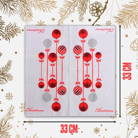 Салфетки новогодние бумажные «Украшения», 33×33 см, набор 20 шт. Салфетки станут отличным украшением праздничного стола! Изделия из двуслойной бумаги с ярким принтом добавят сервировке красочных ноток и дополнят антураж. Эта деталь придется по душе всем гостям, которые непременно почувствуют сказочный эффект правильно организованного торжества!