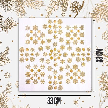 Салфетки новогодние бумажные «Золотые снежинки», 33×33 см, набор 20 шт. Салфетки станут отличным украшением праздничного стола! Изделия из двуслойной бумаги с ярким принтом добавят сервировке красочных ноток и дополнят антураж. Эта деталь придется по душе всем гостям, которые непременно почувствуют сказочный эффект правильно организованного торжества!