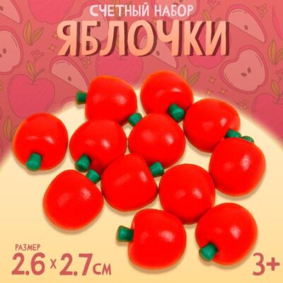 Счетный набор «Яблочки», размер яблока: 2.7×2.6 см. При обучении детей счету, очень полезно использовать красивые, яркие и разнообразные предметы. Ребенку очень сложно мыслить абстрактно. Счет с использованием предметов гораздо понятнее и облегчает процесс обучения. Набор поможет развить воображение, логическое мышление, визуальное восприятие, мелкую моторику. Фигурки сделаны из дерева и покрыты безопасными для детского здоровья красками. Рекомендовано для детей от 3 лет.