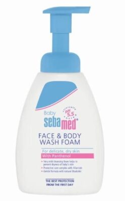 Make bath time fun and without tears with the Sebamed 400ml Face And Body Wash Foam. Consolidates the resistance of babys delicate skin. With the pH value of 5.5 Baby Sebamed is clinically proven to promote the development of the acid mantle Without color additives 100 soap and alkali-free smooth, extra mild foam for the most gentle and convenient daily cleansing of your babys delicate skin. Protective moisturizing complex with moisture-retaining allantoin and bisabolol. Effective hydration prevents dryness Panthenol protects against irritation on babies face and body. Panthenol and Allantoin contribute to the soothing and regenerating effects Easy to apply and rinse off.
