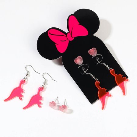 Серьги, набор бижутерии «Минни Маус и Дино», розовые, золотой. Серьги«Минни Маус и Дино» золотого и розового цвета станут прекрасным дополнением к вашему образу. Они выполнены в стиле популярного мультфильма, что делает их милыми и стильными. Эти серьги идеально подойдут для повседневной носки или особых случаев.