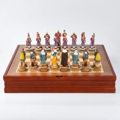 Главная » Товары для детей Шахматы сувенирные Просмотров 5 Шахматы сувенирные «Восточные», h короля-8 см, h пешки-6.5 см, 36×36 см. No brand