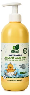 Шампунь для чувствительной кожи с экстрактом череды и календулы "Dr.Tutelle", формула "без слез", не содержит мыла и красителей, с первых дней жизни 0+. Детский шампунь специально разработан для ежедневного мытья волос. Мягко и нежно очищает волосы и чувствительную кожу головы малыша. Способ применения: выдавите необходимое количество средства на руку, вспеньте и нанесите мягкими массирующими движениями на голову ребенка, затем смойте теплой водой.