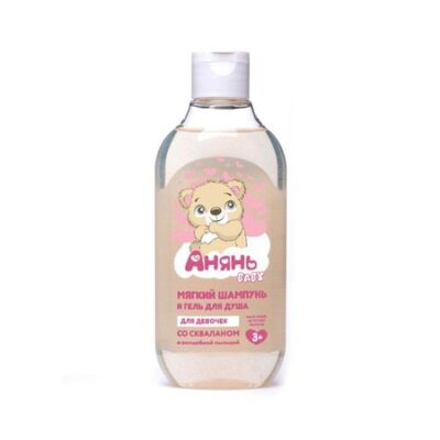 Шампунь и гель для душа для девочек без слез со скваланом и волшебной пыльцой 3+ Baby Анянь 300мл