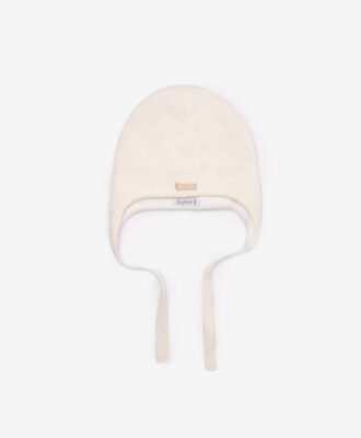 Молочная вязаная шапка — прекрасный зимний вариант! Выполненная из мягкой многокомпонентной пряжи с содержанием шерсти, на хлопковой трикотажной подкладке с тонким утеплителем — синтепоном, шапка очень приятна при тактильном контакте, что важно для комфорта и настроения ребёнка. В оформлении изделия использована фирменная жаккардовая нашивка.