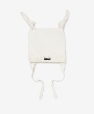 Белая вязаная шапка с мягкими узелками, выполненная из мягкой многокомпонентной пряжи с содержанием шерсти, на трикотажной подкладке, шапка очень приятна при тактильном контакте, что важно для комфорта и настроения мальчика. В оформлении изделия использована фирменная жаккардовая нашивка.